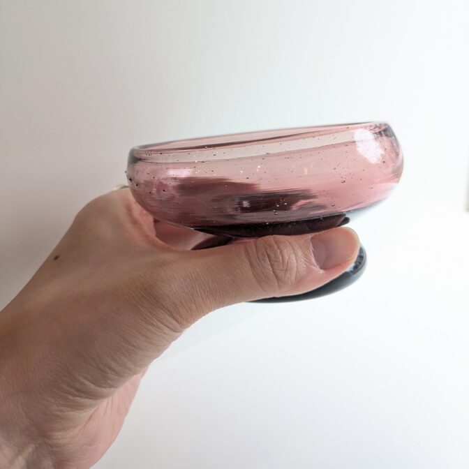 背が低く丸みのあるフォルムが可愛いグラス。