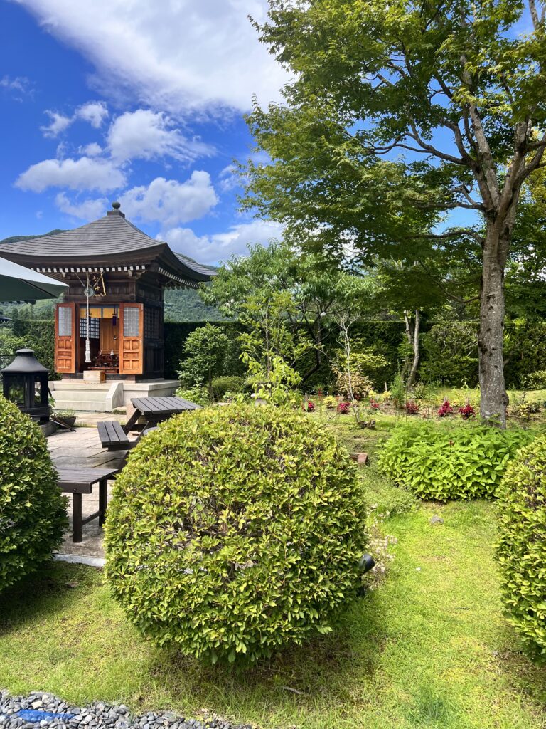 綺麗に整えられた植木に、まだ新しい建物は周囲の自然と一体化しており、気持ちの良い空間。