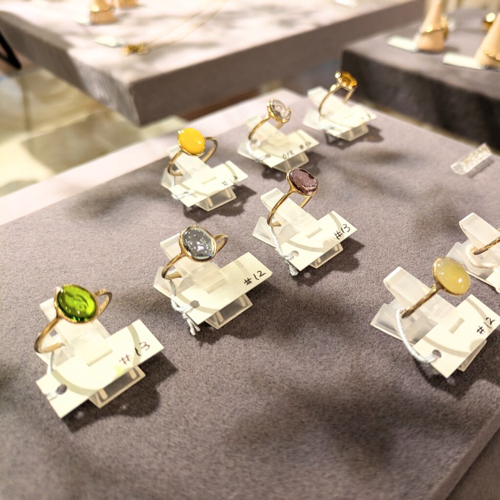 店頭には他にも様々なデザインのアクセサリーを並べておりますので、ぜひ見にいらして下さい!