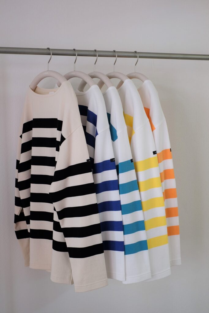 新しいアイディアや安全で確かな素材、培われてきた技術をボーダーカットソーに全て注ぎ、ひとつひとつ丁寧に仕上げていきます。