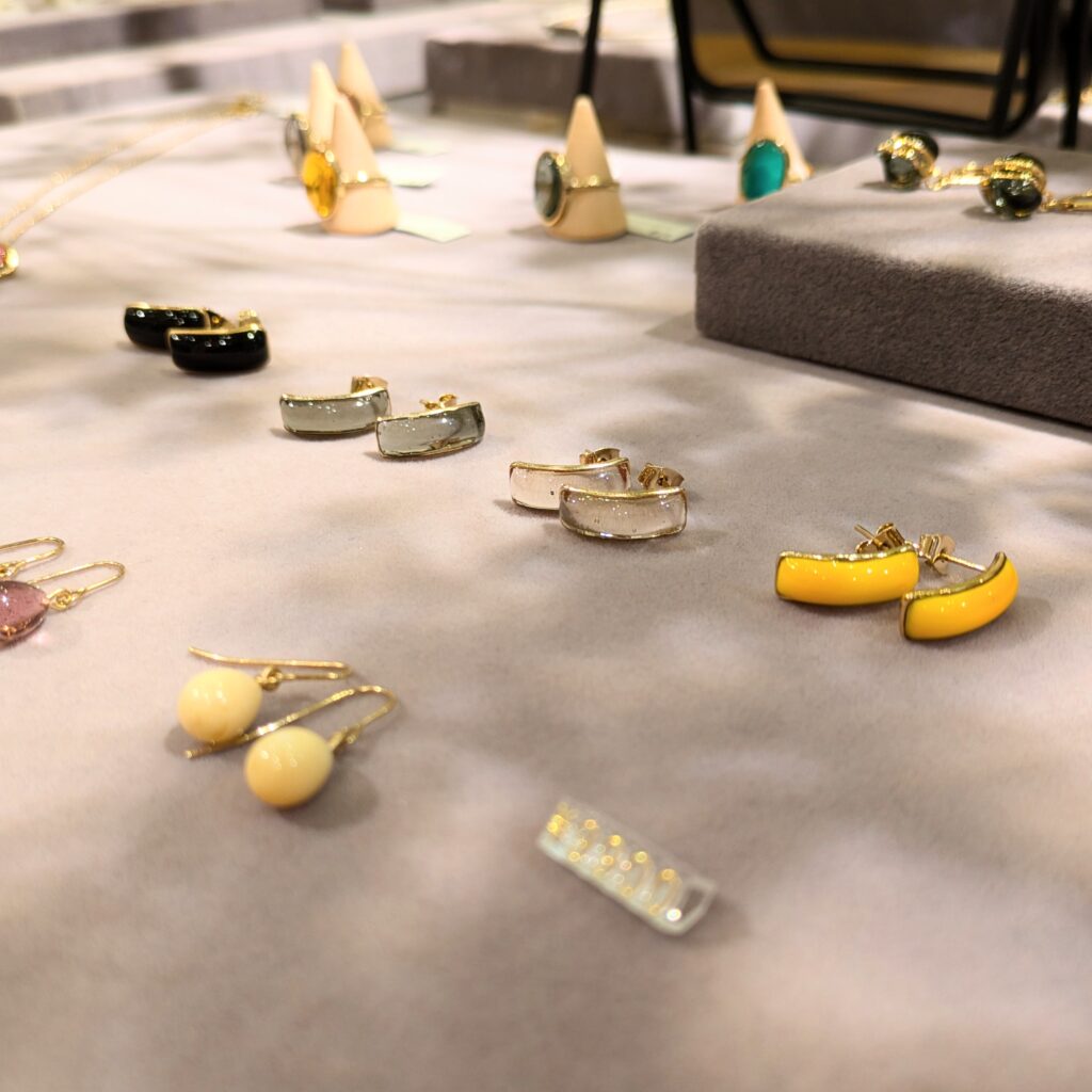 受注会ではリングやネックレス、ピアスなど店頭にご用意しているお好きなアクセサリーのベースに、50種類以上の中からお好きな色を決めていただきます。