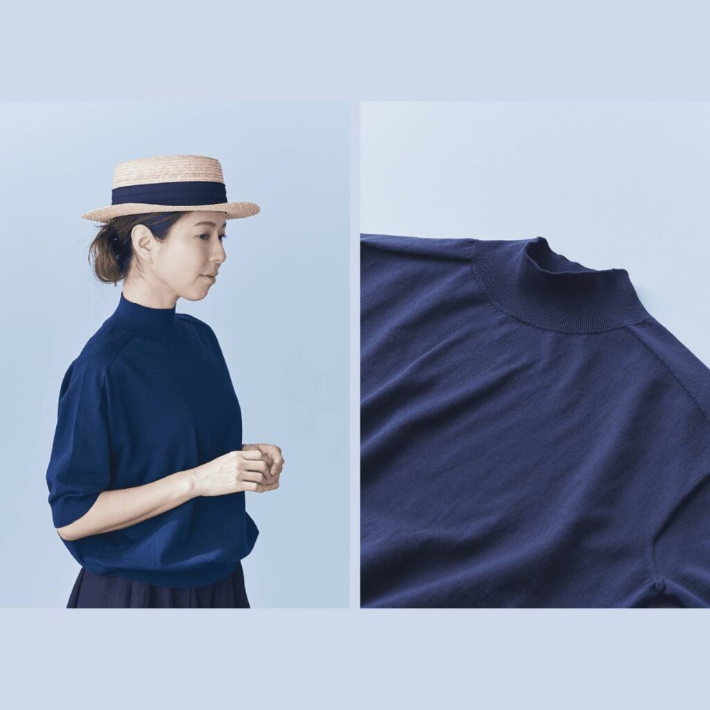 夏に「ニット」と聞くと暑いと思われるかもしれませんが、薄手で通気性のあるコットン素材なので、冬のウールニットのような暖かさはありません。