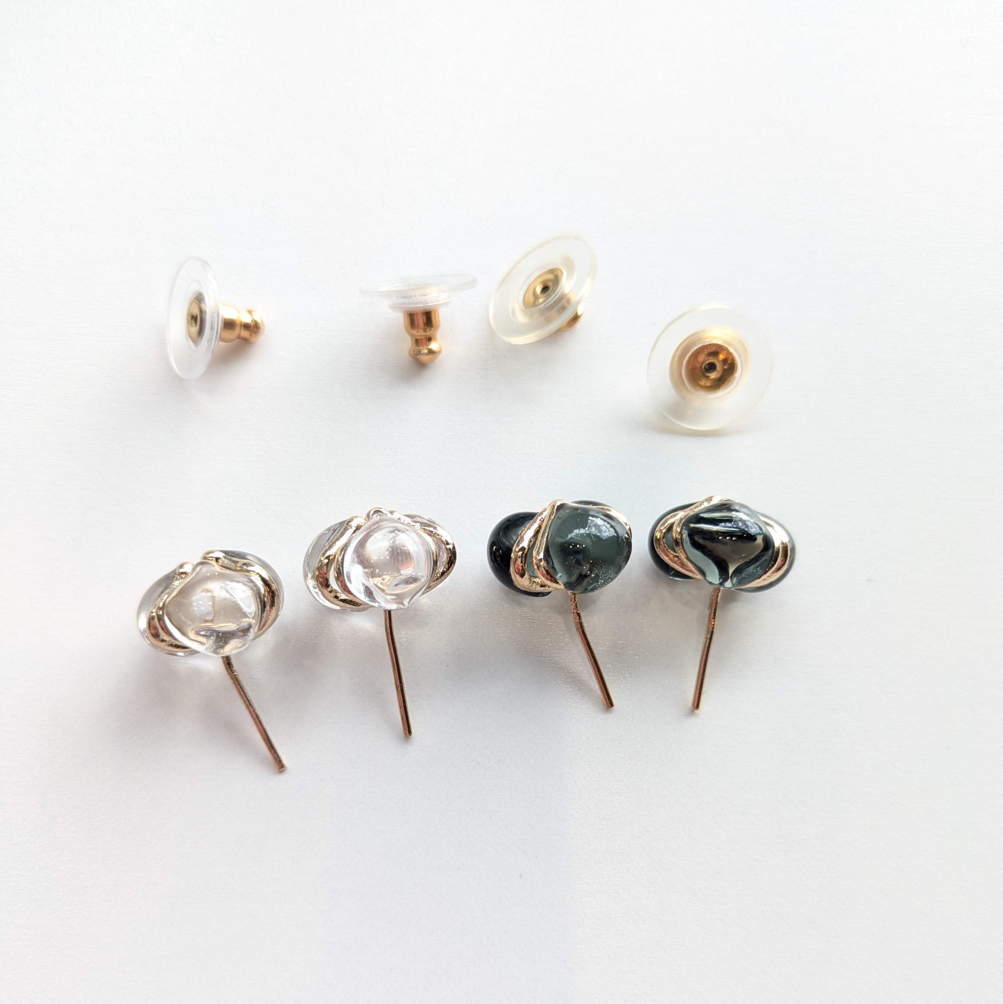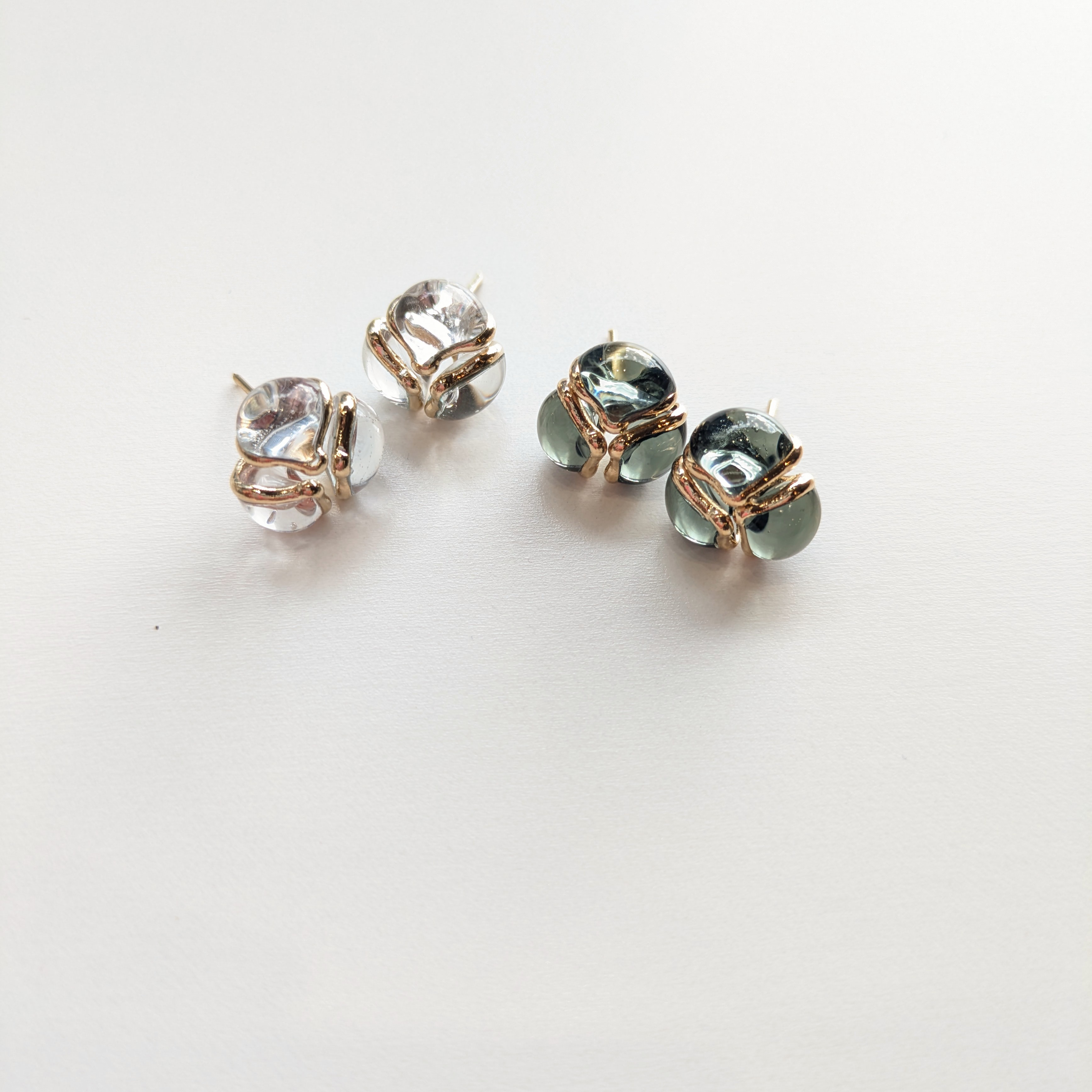 ◆一点一点ハンドメイドのためガラスの膨らみや形、ポストの長さ、ゴールドコーティングの色味など個体差があります。彼女の手から生み出される作品を、ぜひ楽しんでいただけたらと思います。