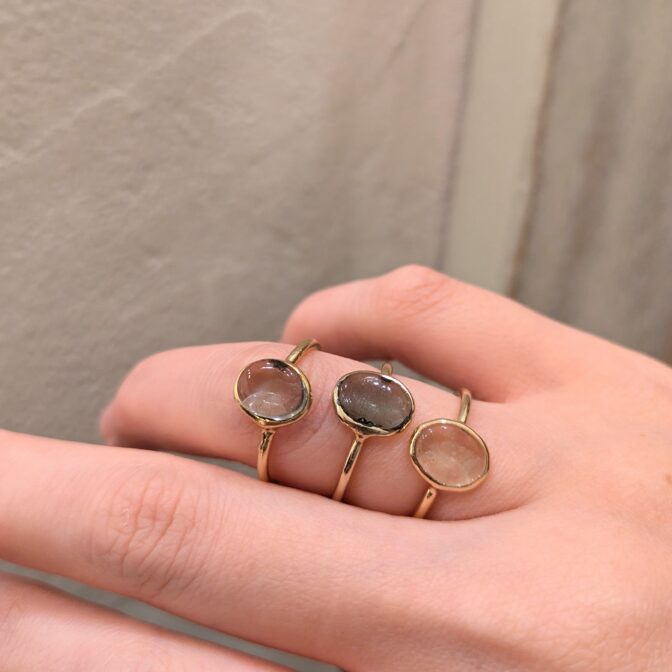 ◆一点一点ハンドメイドのためリングサイズや形、ゴールドコーティングの色味など個体差があります。彼女の手から生み出される作品を、ぜひ楽しんでいただけたらと思います。