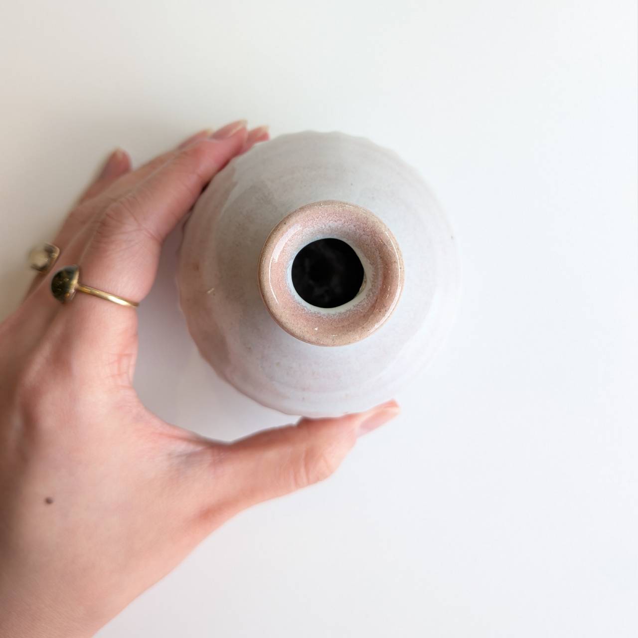 淡いピンクとホワイトの釉薬が、空間にふんわりと柔らかな彩りを添えてくれます。