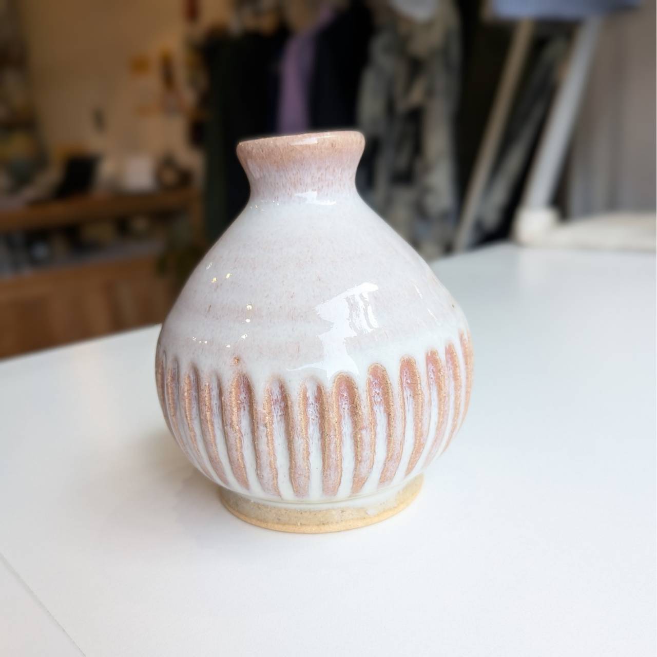 万風窯のしのぎ一輪挿し|やさしい彩りの陶器花器