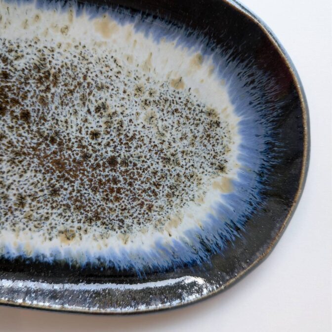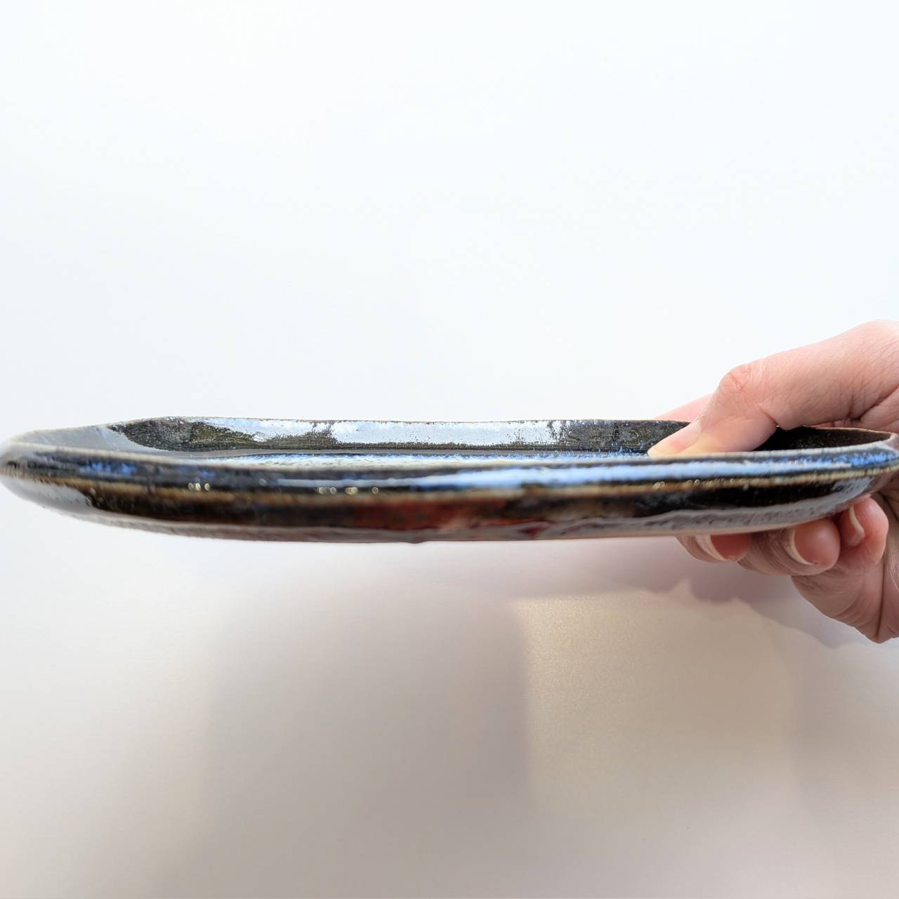 万風窯(まんぷうがま)蔵王土楕円皿/ダークブルー