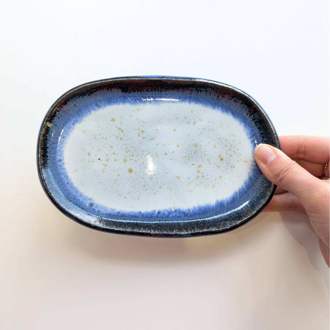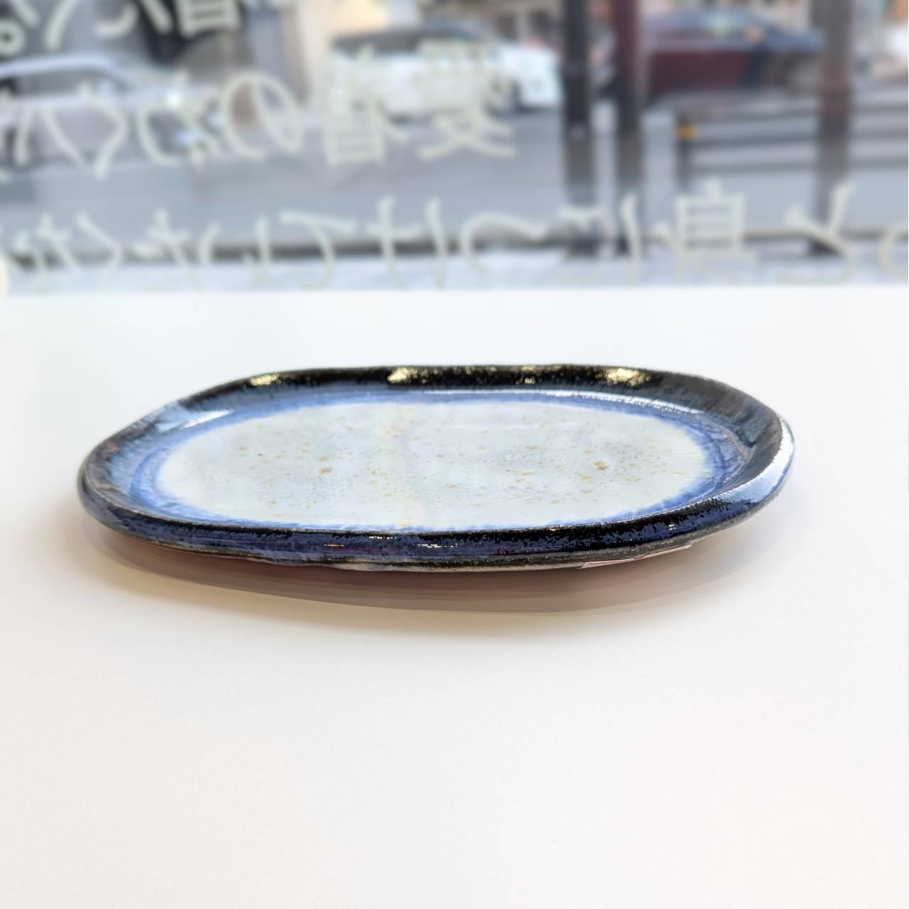 万風窯(まんぷうがま)蔵王土楕円皿/ブルー