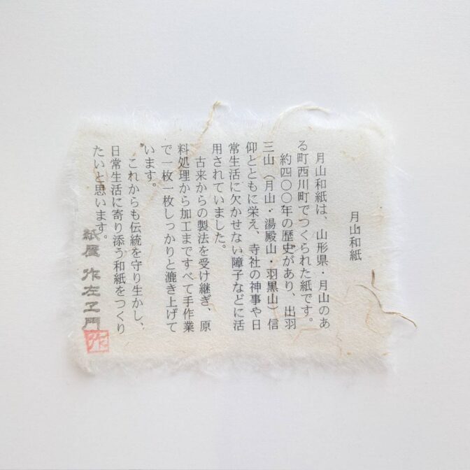 京都・黒谷和紙での修行を経て、山形県西川町に移住し製作を続けています。