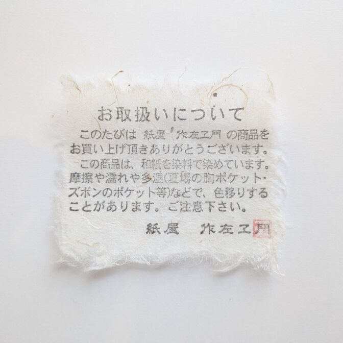 こちらの袱紗は、紙を漉く工程から裁断、仕立てに至るまで、一人の職人の手によって丁寧に仕上げられています。