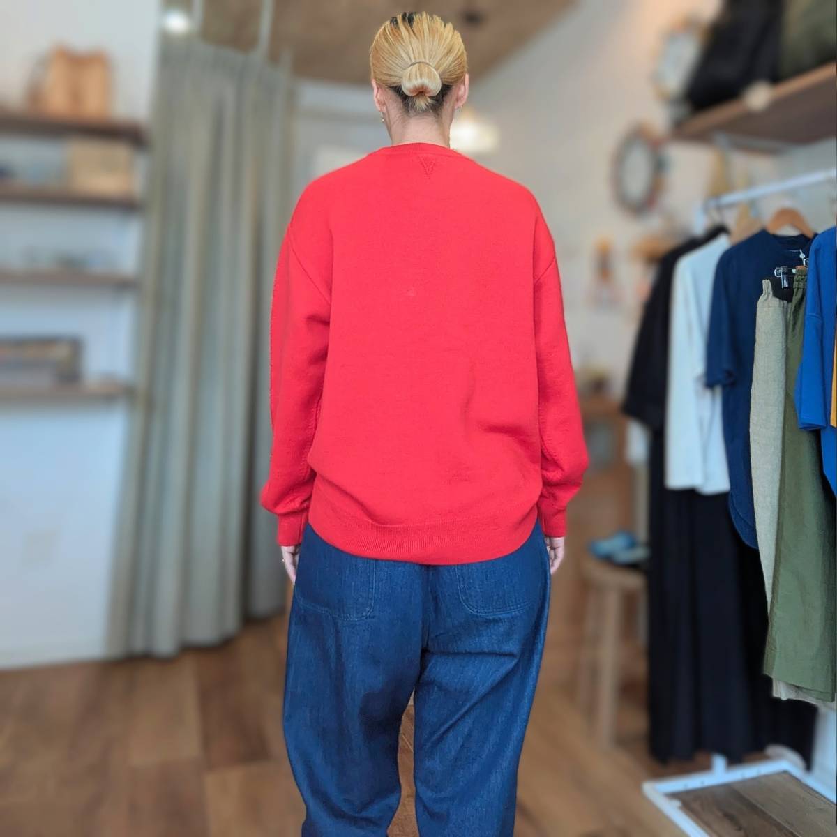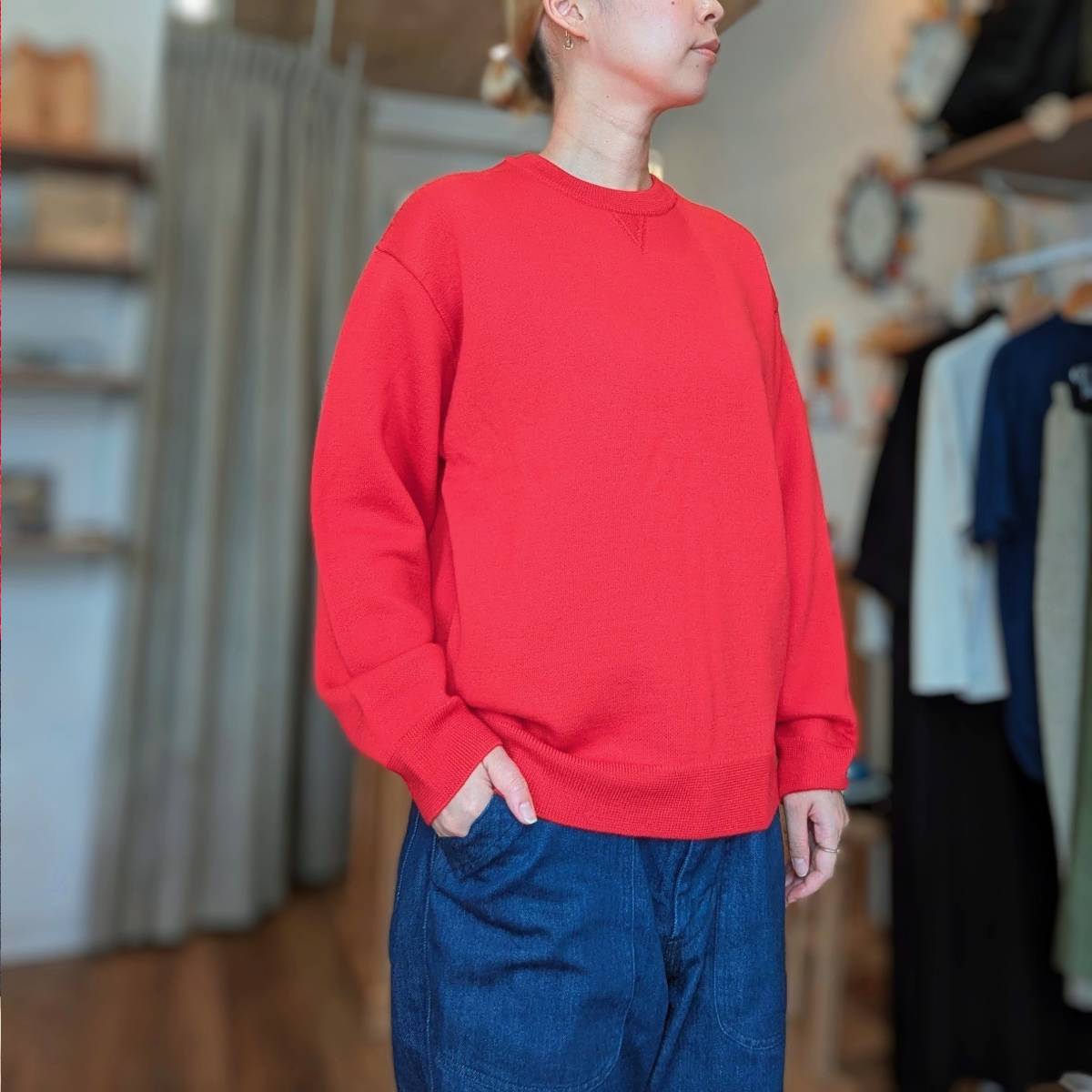 シンプルなクルーネックニットの形をしていますが、着心地を追求し細部までこだわった至極のニットスウェット。