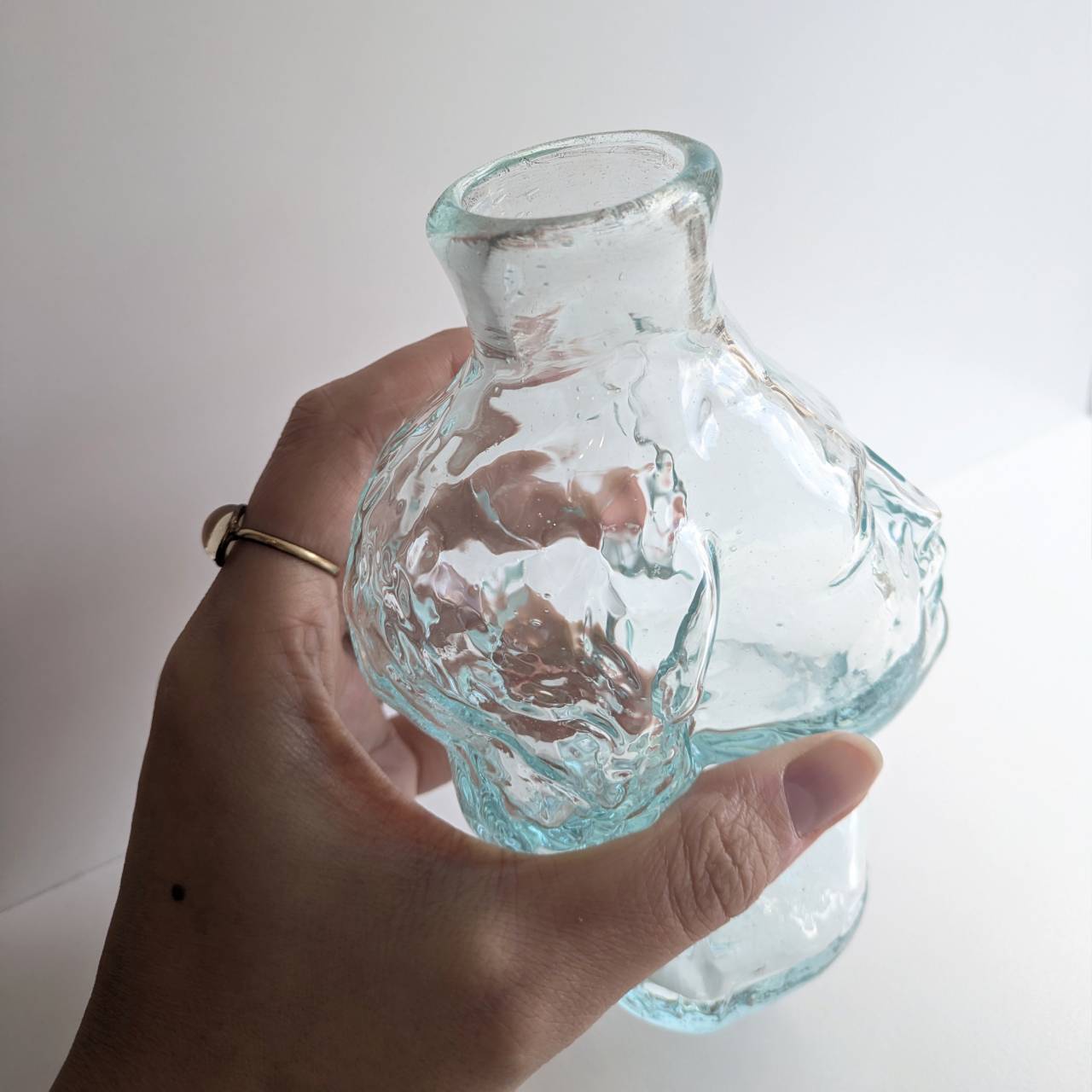 ラスフルリーでは石膏像を模した顔型のガラス製品がいつくか登場しますが、こちらは縦約14cmの小ぶりな一輪挿し。