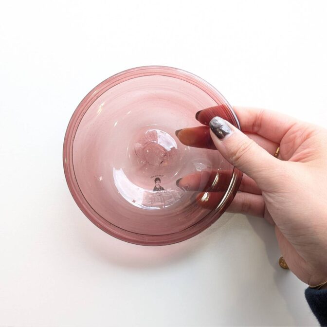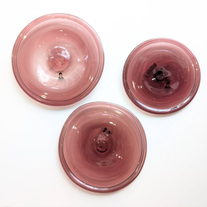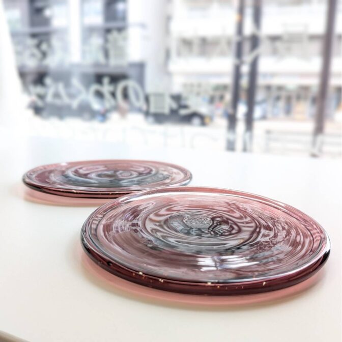 ・お皿の裏面は吹きガラス製ならではの「竿跡」があり、これはガラス本体と吹きガラスを吹く竿を切り離す際にできる跡のことです。