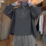 ゆったりとした身幅に、肩を落としたドロップショルダー、背面に施された沢山のギャザーなど、細かで丁寧な作りが詰め込まれたブラウスです。