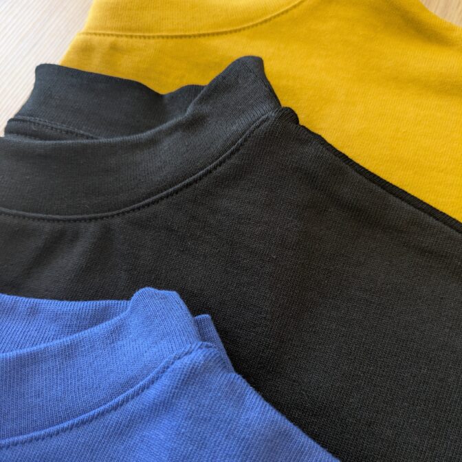 首元は狭すぎず広すぎず、そしてしっかりとしたリブ素材のため、すぐヨレてしまうことがなく安心。