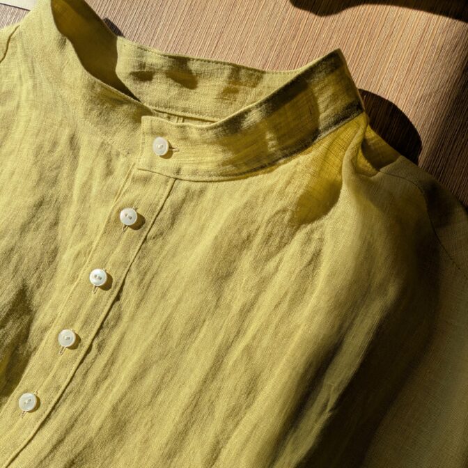 上質リネンの素材を生かしたヘンリーネックブラウス