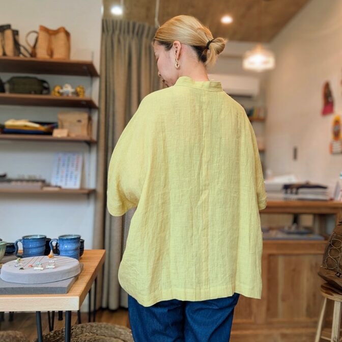 薄手のリネン素材で軽やかな生地が、春、夏、秋のシーズンに活躍します。