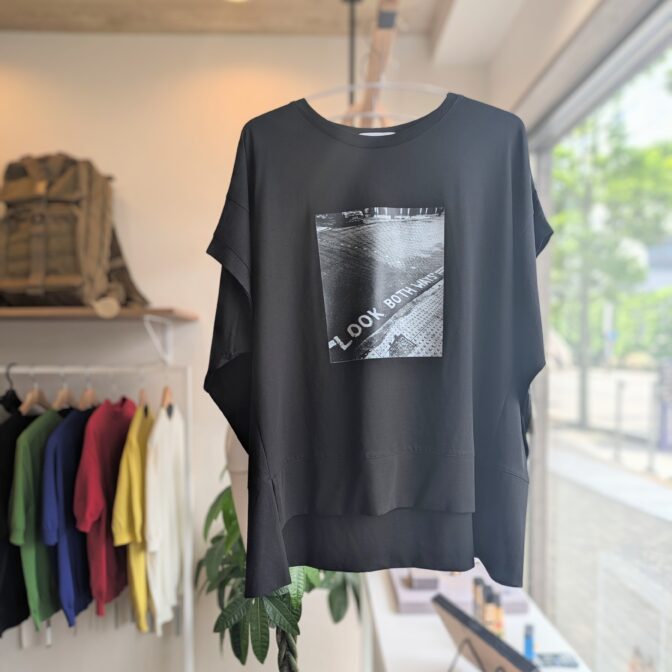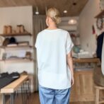デザイン性があるTシャツですので無地のスカートやデニムとの相性も良く、春や秋のシーズンにはカーディガンなどの羽織ものと合わせても◎。