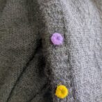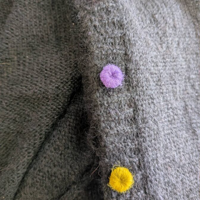 ボタンには、素材への負担を抑えるため軽い刺繍ボタンを採用。