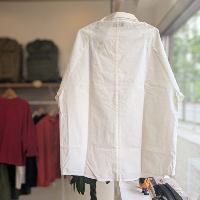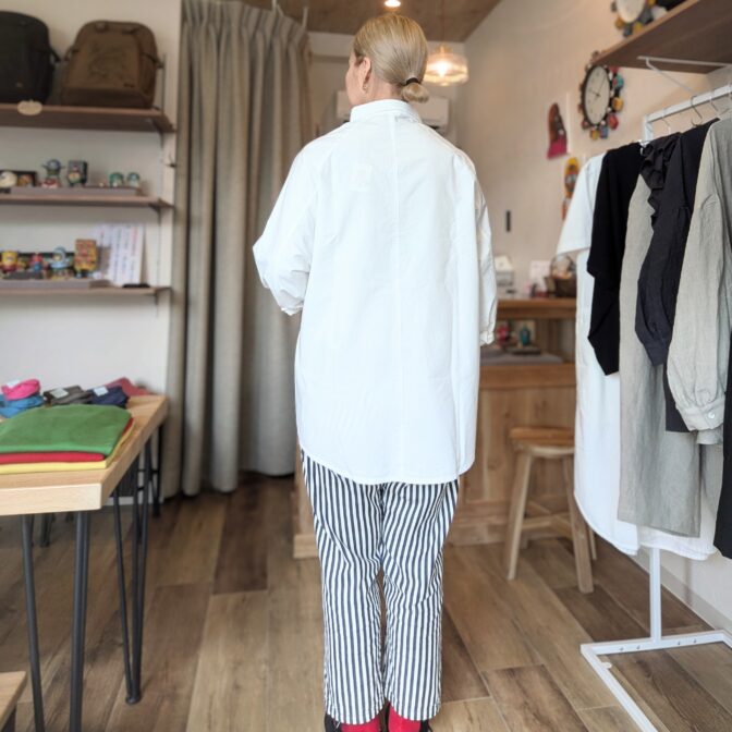 身幅は61cmとゆとりがあり、ハリのあるコットン地でカジュアルな印象。