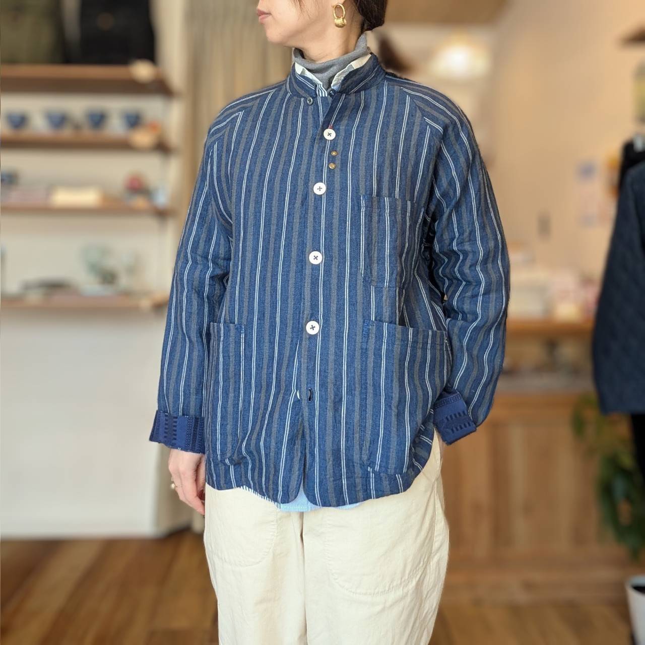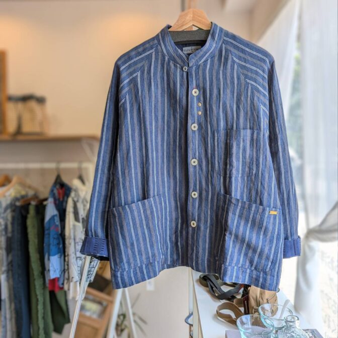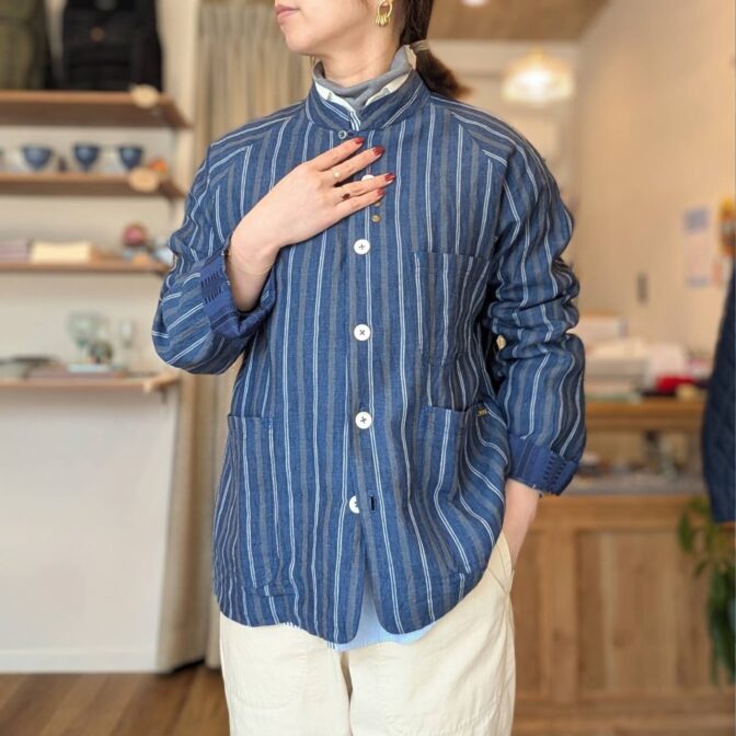凛とした佇まいに、さりげない遊び心を。藍色ストライプのリネンジャケット