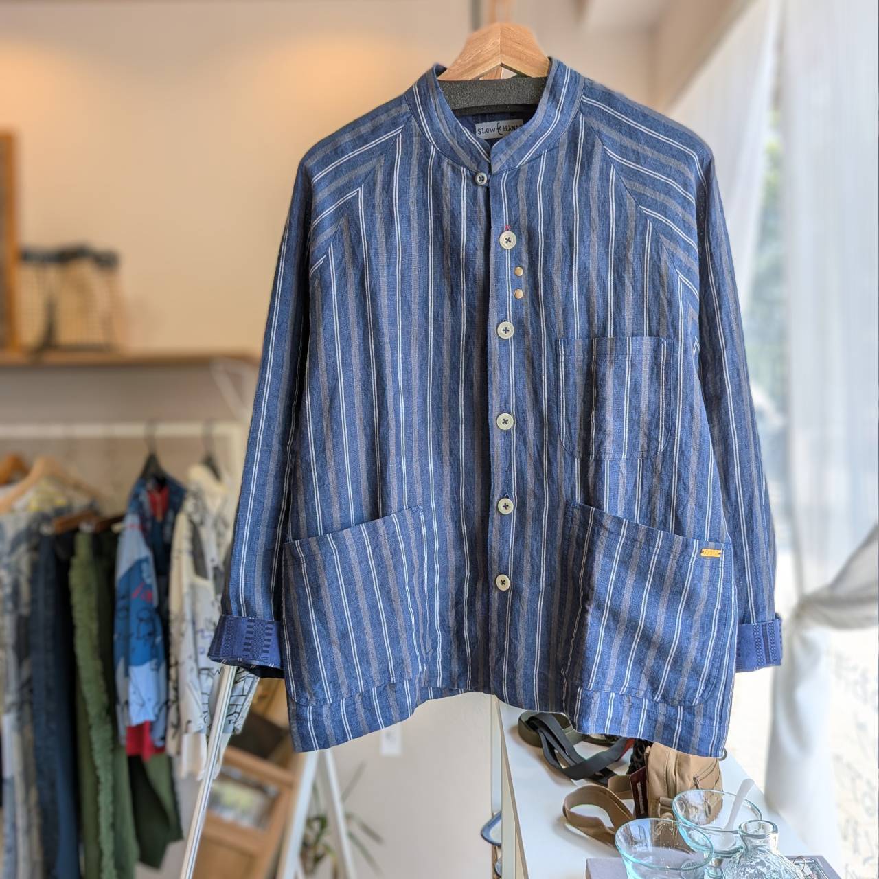 SLOW HANDS(スローハンズ)ストライプ柄リネンジャケット/男女兼用