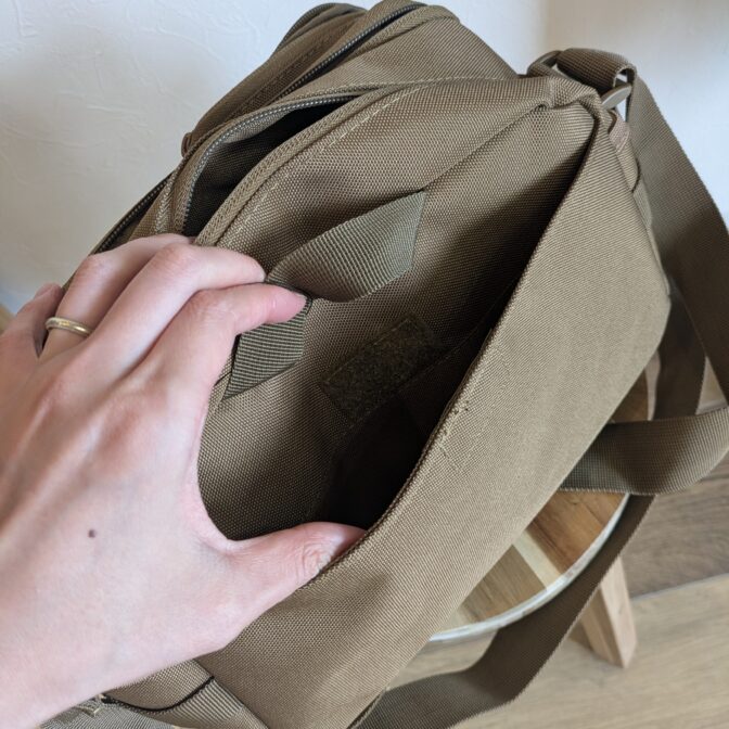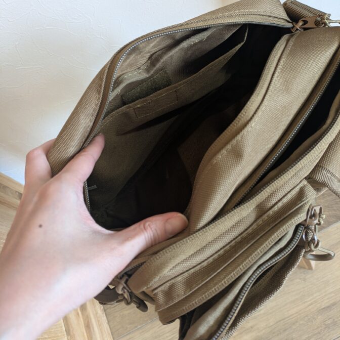 縦20cm横27cmに奥行き16cmとコンパクトなサイズ感でありながらも、収納ポケットが多いのが特徴。
