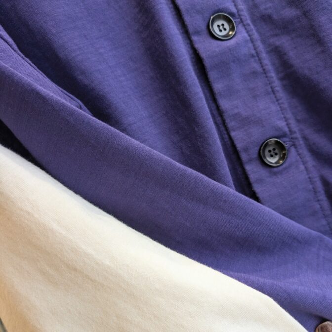 タテ糸とヨコ糸を交差させて織る平織りの天竺(てんじく)素材を使ったカーディガン。